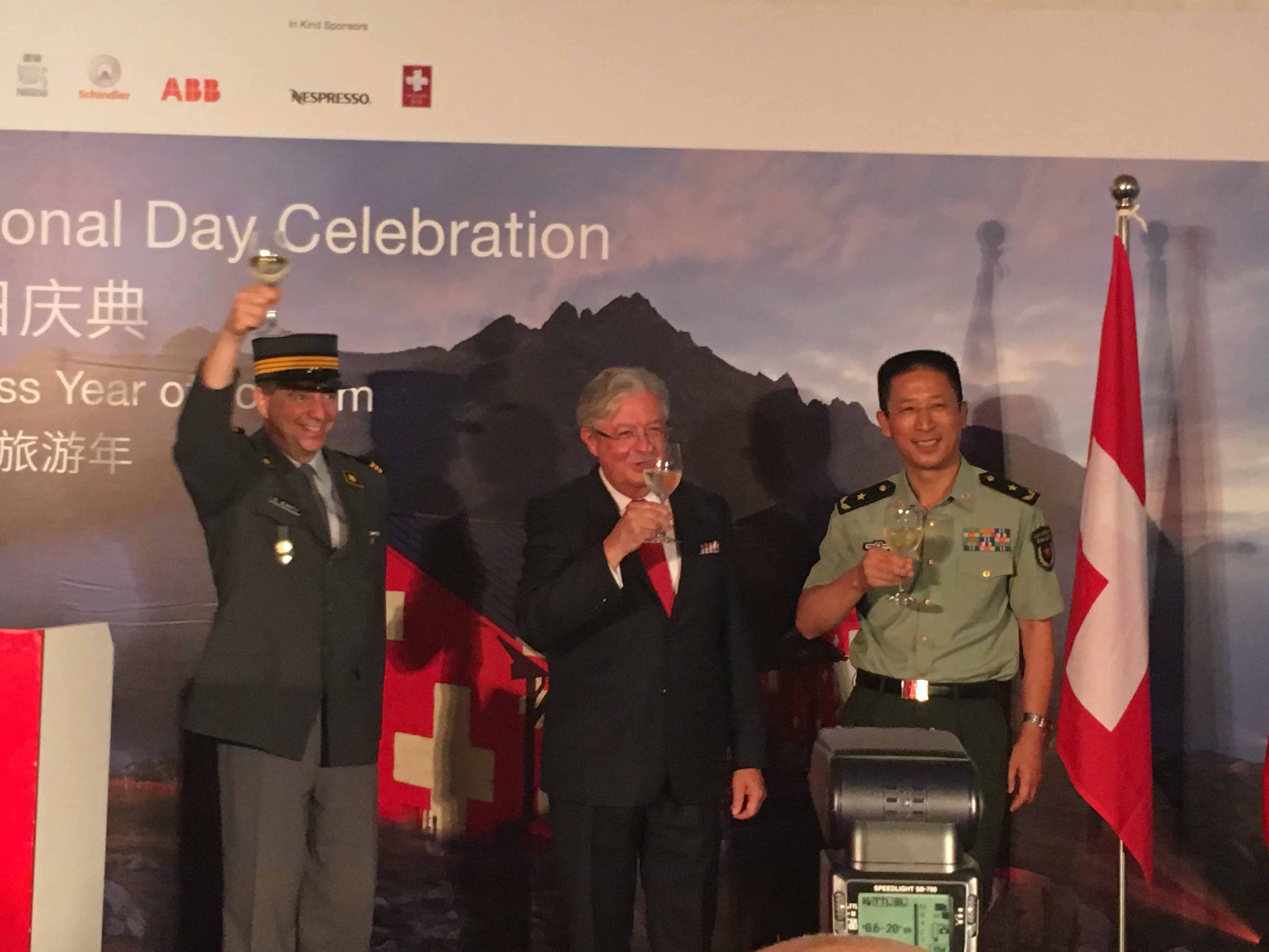 瑞士驻华大使戴尚贤阁下与中瑞两国军方代表举杯同庆