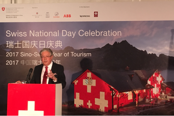 2017年7月21日下午,受瑞士驻华大使戴尚贤阁下邀请,我会海外联络部陈皓月、刘雨亮参加了在瑞士驻华使馆举办的“瑞士国庆日庆典--2017中国瑞士旅游年”招待活动。